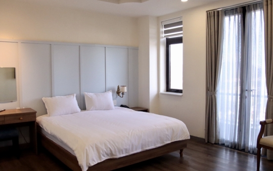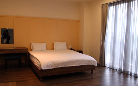 Phòng ngủ được trang bị nội thất gỗ cao cấp, ban công rộng cực chill.