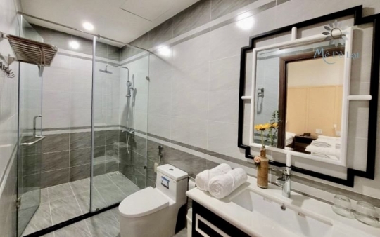 Khu vực tắm được ngăn cách với khu vực vệ sinh, giúp toilet các phòng luôn được khô ráo.